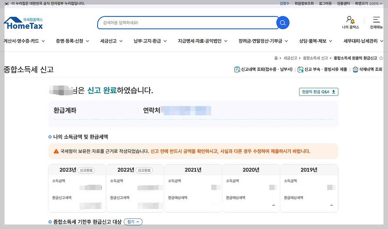 ⚠️ 국세청 원클릭 환급서비스 이용 시 주의사항