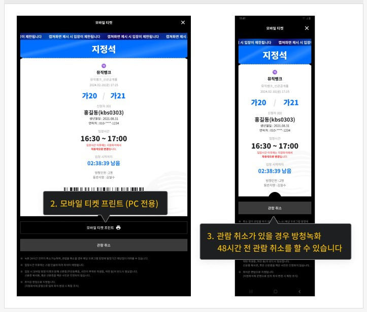 ※ 신분증이 없거나 신청자와 입장자가 불일치할 경우 입장이 제한됩니다.