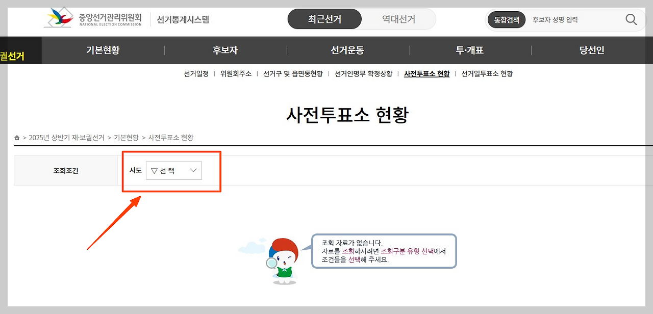 - 지역 선택 및 후보자 목록 열람
