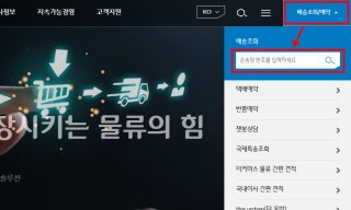 - 메인 페이지 상단 ‘배송조회’ 클릭