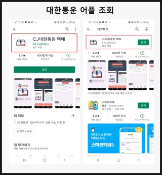 - CJ대한통운 공식 앱을 다운로드한 후 운송장 번호 입력 후 조회